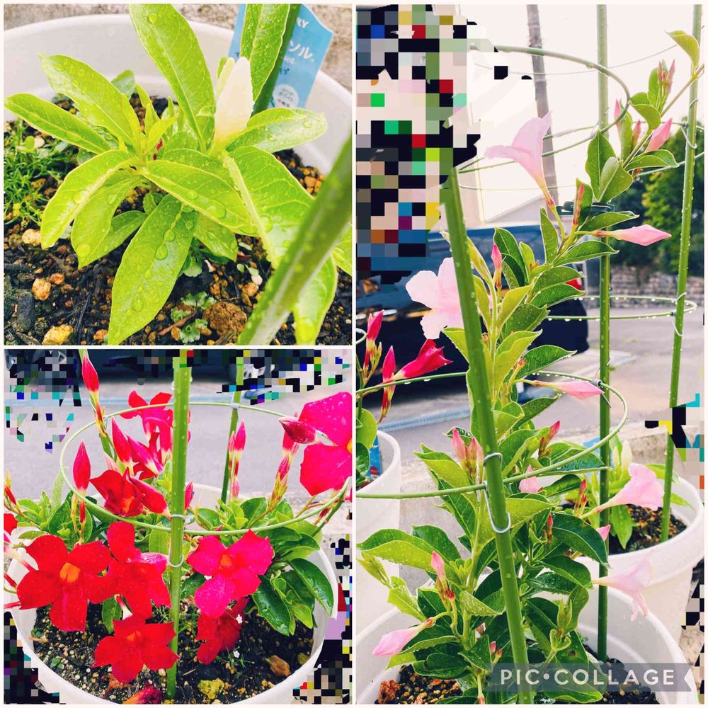 なかなかツルが伸びないなぁ〜と思ったらビューティーさんだけやっと伸びてきたのですが、隣の鉢の支柱に巻き付いたので一旦外しました😅