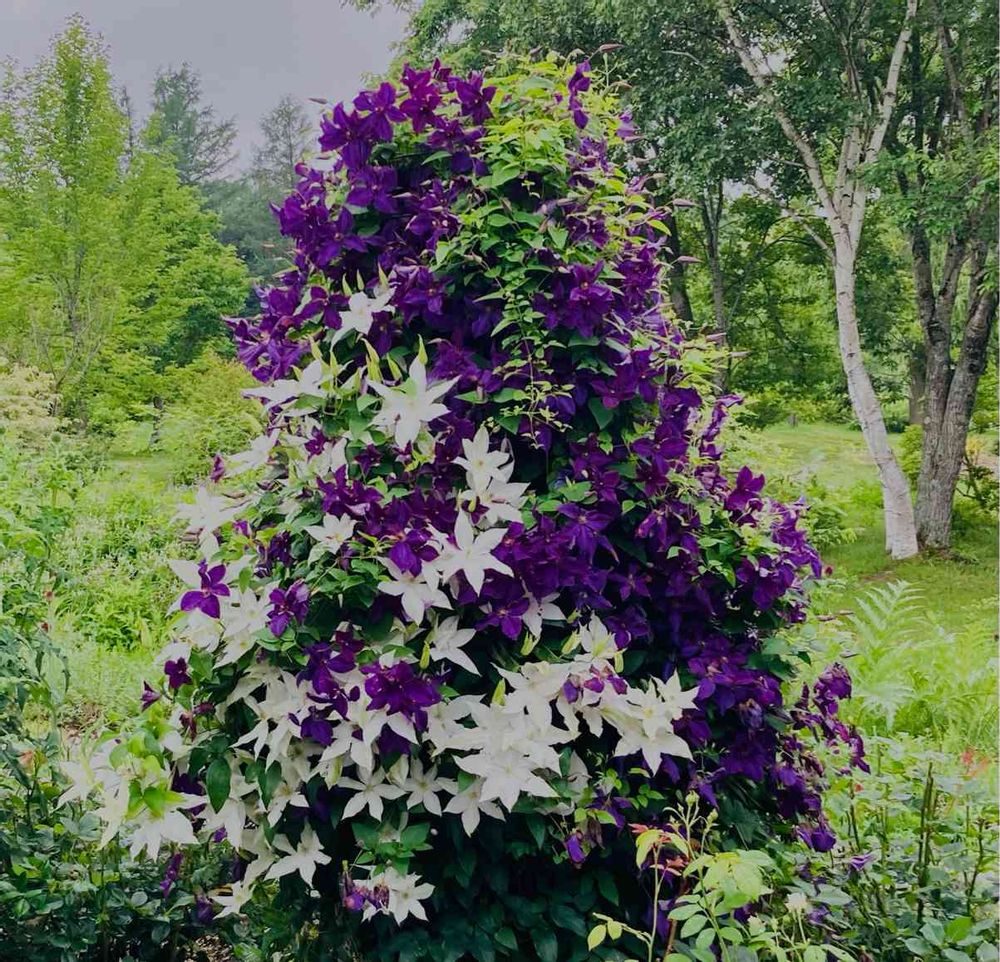 白山さん。💜🤍のテッセン周りが緑なので、一層花が映えますね。😉💕