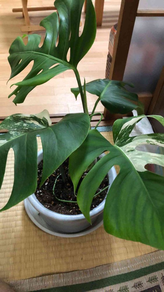 冬に初めて買ったモンステラ斑入り。そこそこデカくなった^_^