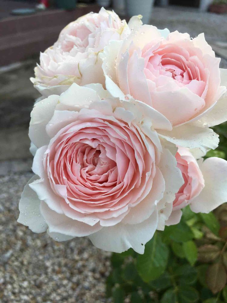 咲き進んだ姿は一瞬白バラかと思うくらいですが💦咲いてすぐだとピンクが濃いので一番可愛いです🥰