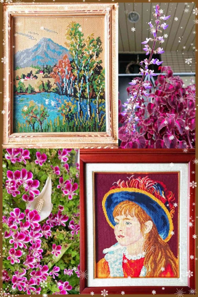 ↘️独身時代に作成し額が高額だった為、結婚後にようやく完成😄(刺繍糸2本で全面)