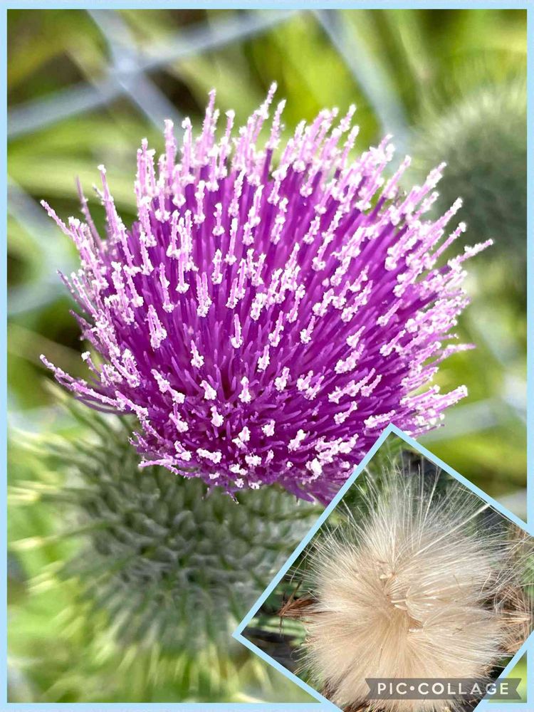 白い花粉のアザミさんがきれいですね🤍💜🌱