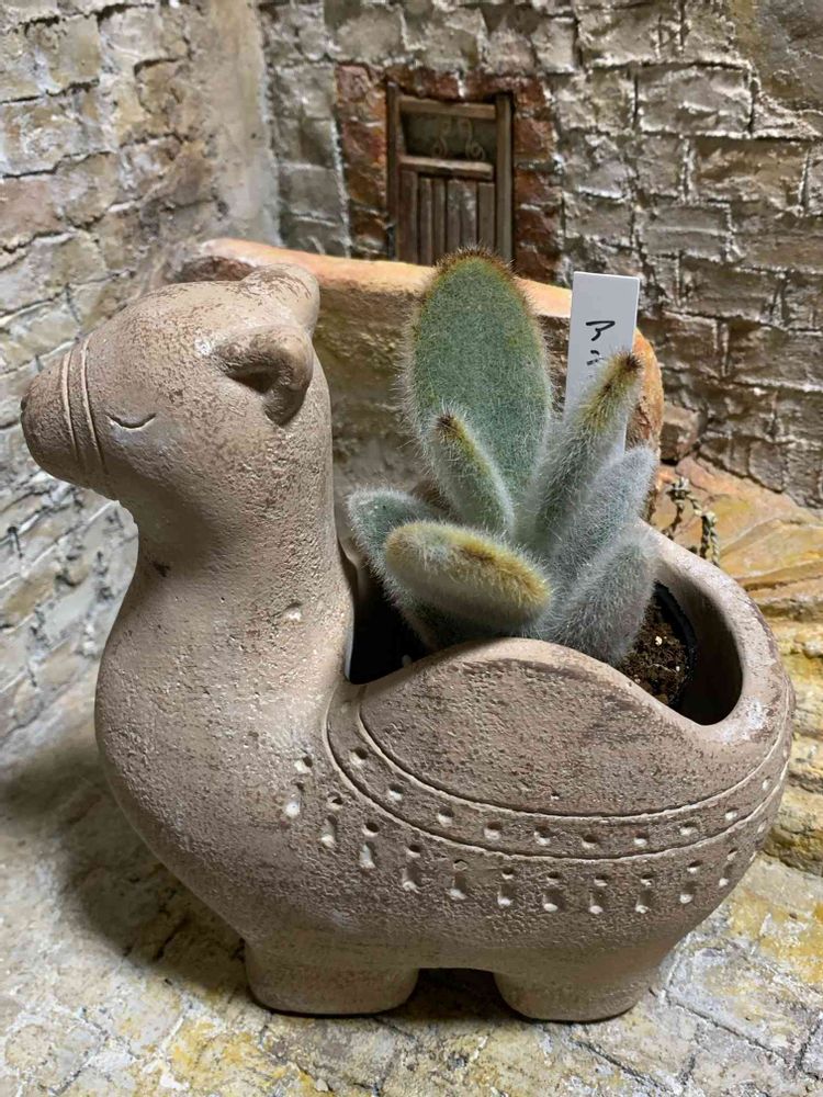オザキフラワーパークで購入したアンゴラちゃんとラクダ鉢です。