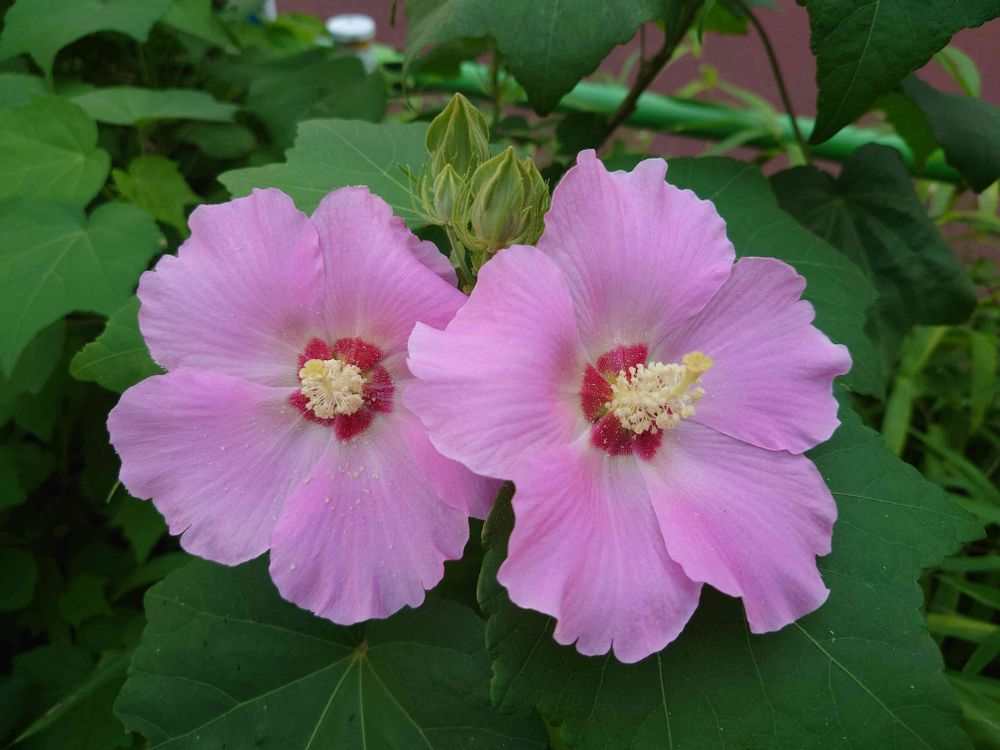 ピンク色のフヨウがふたつ仲良く咲いていました。