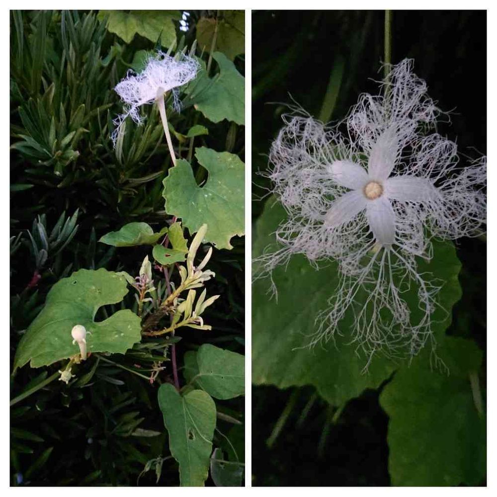 こんにちは。いつも素敵なお花をお見せ頂き有難う御座います。「カラスウリ」確かにこの形態は不思議ですね。この後の繭玉のように、自分の白い糸状のものを体に巻き付けた様子も不思議です。夜間に撮られたので、よりはっきりと形態が見る事が出来ました。どうぞこの後も愉しい時間をお過ごし下さい。