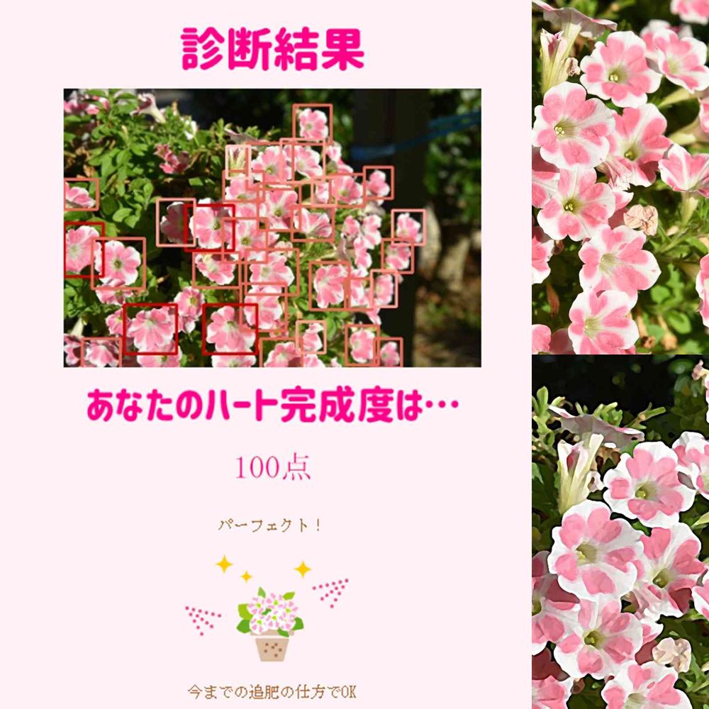 サントリーフラワーズのHPに、サフィニアアート・ももいろハートのハート完成度のAI診断が紹介されていました。