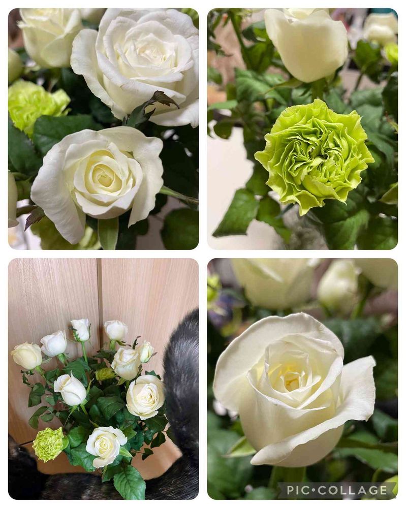 素敵な白バラとグリーンのカーネーション💚爽やかです〜( ˘ ³˘)♥︎