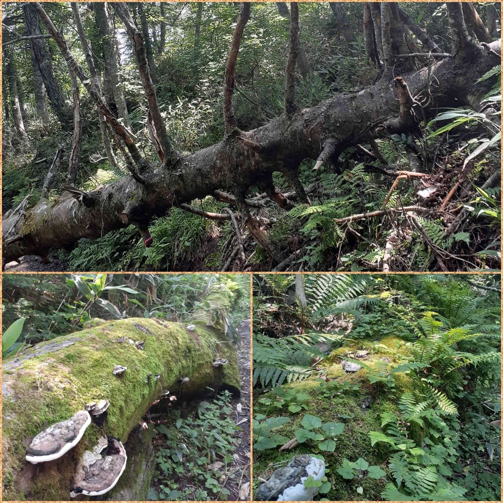 エゾマツの倒木です。苔が朽ちた木を優しく包み、そこから様々な植物や茸が育っていました。この倒れたエゾマツの木からも、やがて沢山の命が生まれるのですね…。