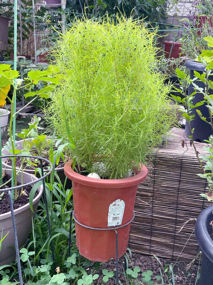 令和4年8月4日(木)☁️曇り☁️☁️ おはよー^_^ございます 小さい庭で朝の見廻りしています。今年は店で未だ買っていないコキアのポット苗 きょねんのコキアを始末の時にこぼした土から出て来た🌱🌱🌱移植で1本が失敗して残った2本です。☔️🌫雨が降って来ました🥺
