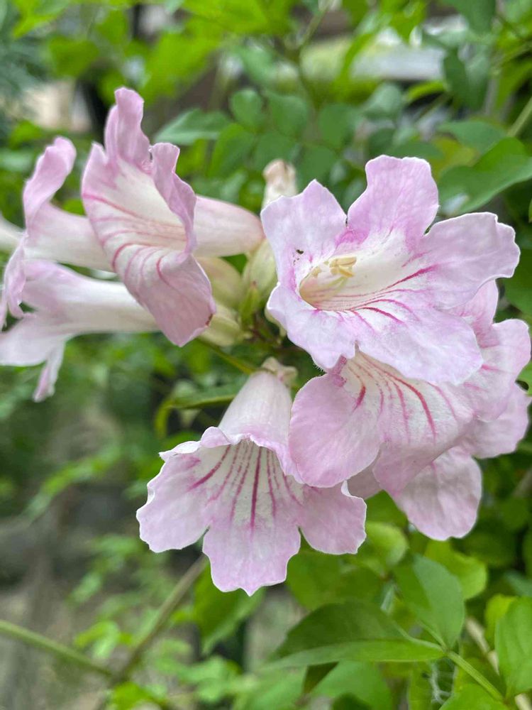 ピンクノウゼンカズラ💗は南アフリカ原産のポドラネア属の落葉つる性木本とのこと