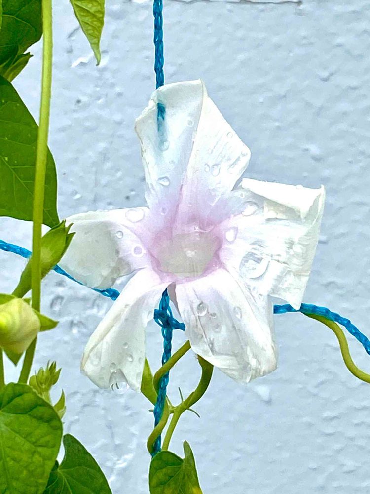 (ノД`)☔️去りて爪痕残すも咲く朝顔…