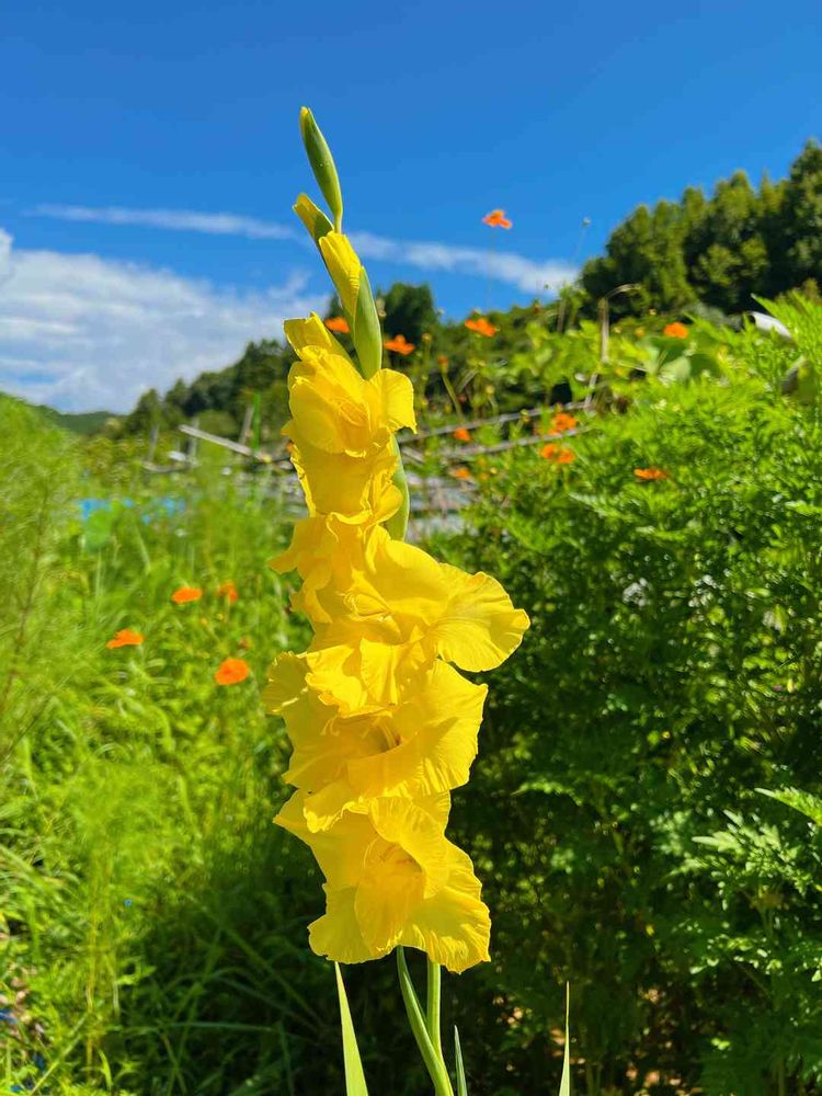 暑くて汗だくだけど青い空と自然の緑とお花に癒されます♪