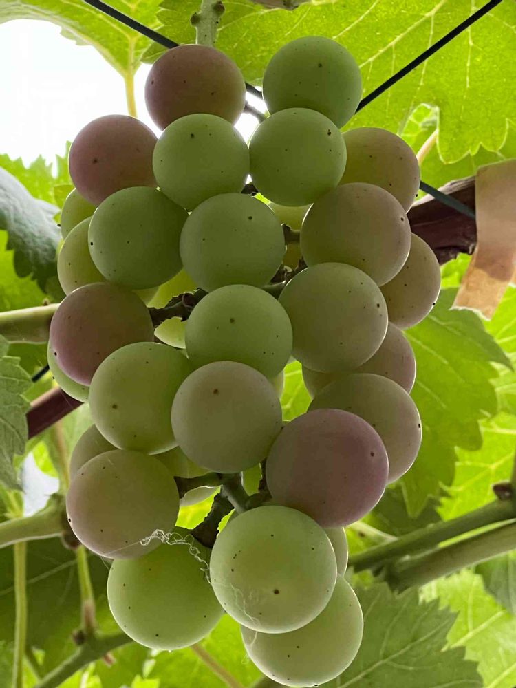 他のは袋がけしてありましたが、この一房だけ色付きをみるそうで直接見ることができました。本当は摘んで味見したかったです。❣️😋