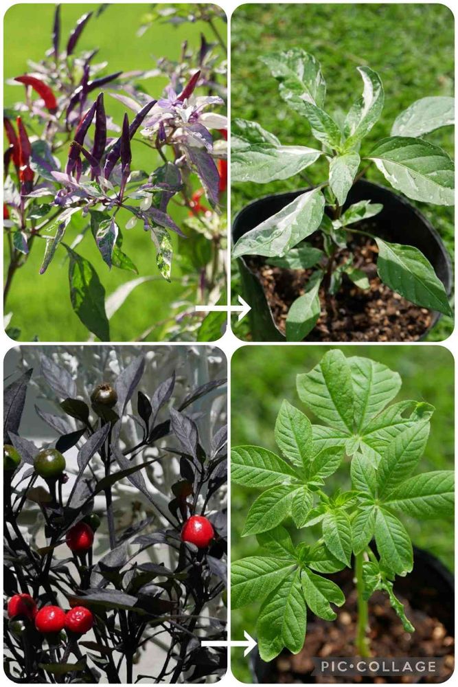 (推測2)(下)の「黒葉の観賞用の五色トウガラシ」は、種は辛く、黒葉になる前の緑の葉は辛くなく、美味しいのでは?