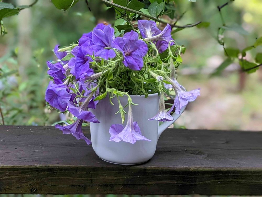 昨日雨に打たれて傷んでしまって昨日切り戻したペチュニア・ブルームーン やっぱり素敵な紫です