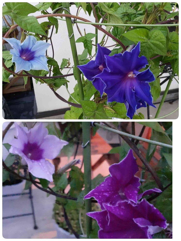 桔梗咲き朝顔、色とりどりで綺麗ですね〜😍💜🤍💗🌿