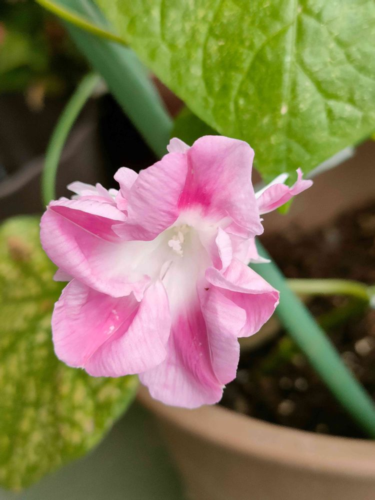 ただ、虫にとっては 受粉しにくそうな朝顔ですよね。 白花を🆙されてる方もいらして、🤍爽やかそう🍃だと見させてもらいましたが、1年目はピンク💗で、正解だったかな〜♡なんて思ってます。