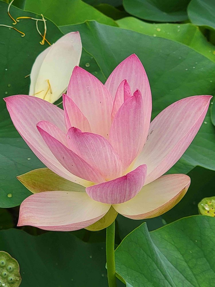 神聖な雰囲気を放ちながら咲き誇る蓮の華やぎは、美しいなぁ~✌️
