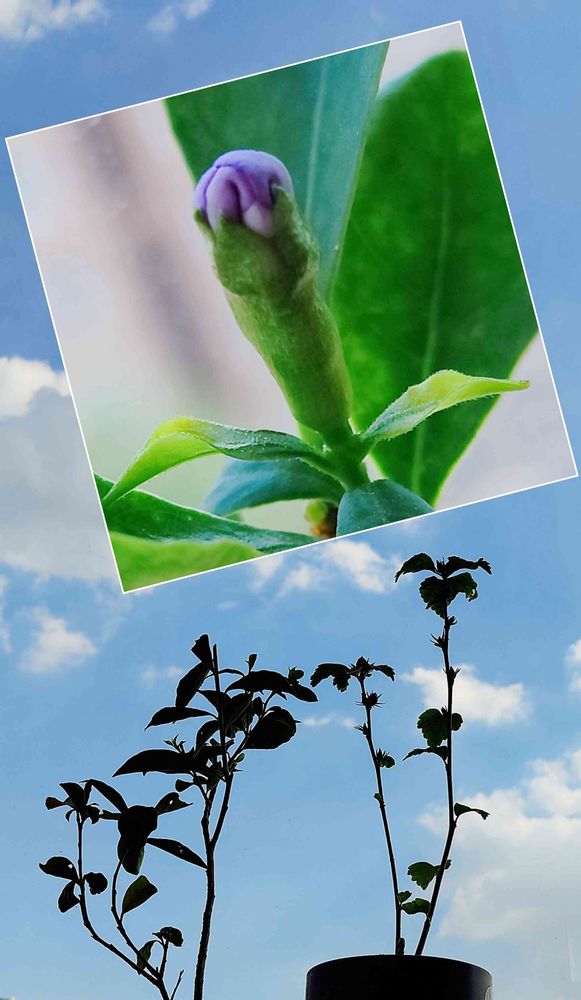 ムクゲと一緒の時期にGSの花友さんオススメのニオイバンマツリも買ってたんですが、やっぱり最初の葉が全部落ちてしまって、一時は無惨な姿に😥