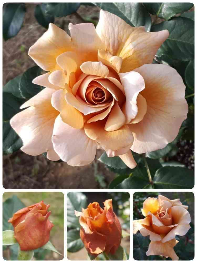 考えられるのは、黄色い薔薇の枝変わりの枝を挿し木したもののひとつ。黄色がピンクに変わっていた枝から挿し木が二枝成功して、一株はピンクの花が咲きました。(4月22日と4月24日のpic参照)そしてこの株、去年は薄茶色の一重の、地味~な花が咲いていました。今年は、株が充実したせい?色は同じような感じですが、花びらがこんなに。なんかシックですてきな薔薇になっていませんか?✴💖 去年はあまりにも地味だったので処分も考えていたのに😱、育ててきてよかった。🎶😊 でもまだ形質が安定していなくて、来年また一重の地味な花が咲いたりして…。😅 要観察ですね。👀 あぁ、不思議で面白い‼😆🎵