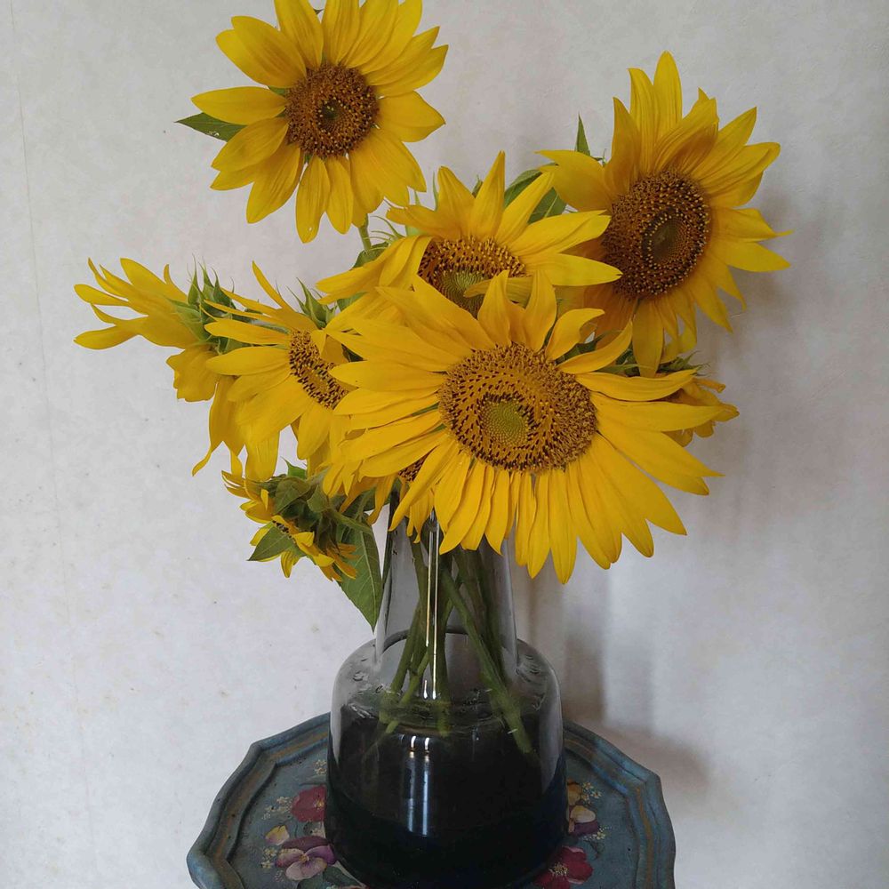 先日ひまわり畑でいただいた🌻🌻ホルムガードに生けました。