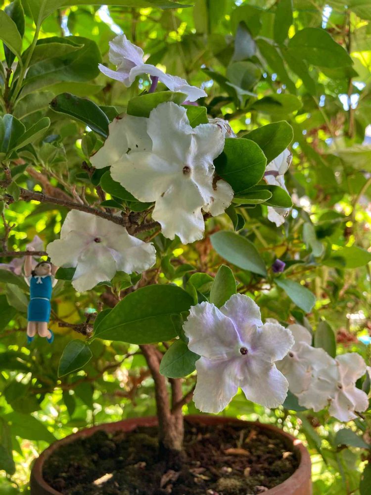 ニオイバンマツリが、グリーンカーテンの影でまた咲き出しました🎶