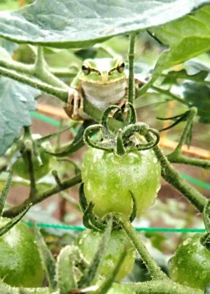 トマトも今ではかなり赤くなってきましたのて🐸さんが隠れていても直ぐにみつかってしまいます\(^o^)/