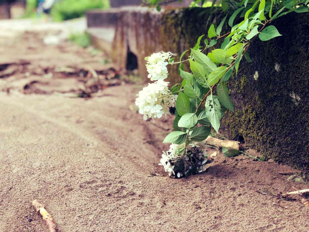 奇跡的に町の一番端っこにあったカフェは被害がなく、庭の花たちもほぼ無傷。