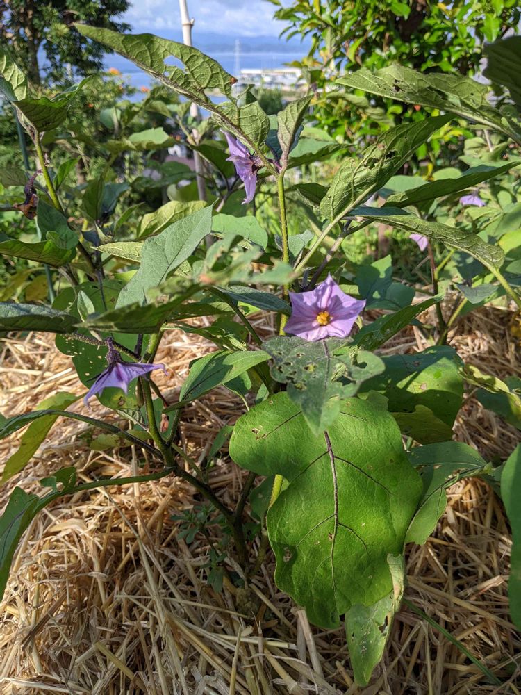 麦わらの、使い残しがあったので、根元に敷いてみました。コレで、暑さ対策👌ok🙆