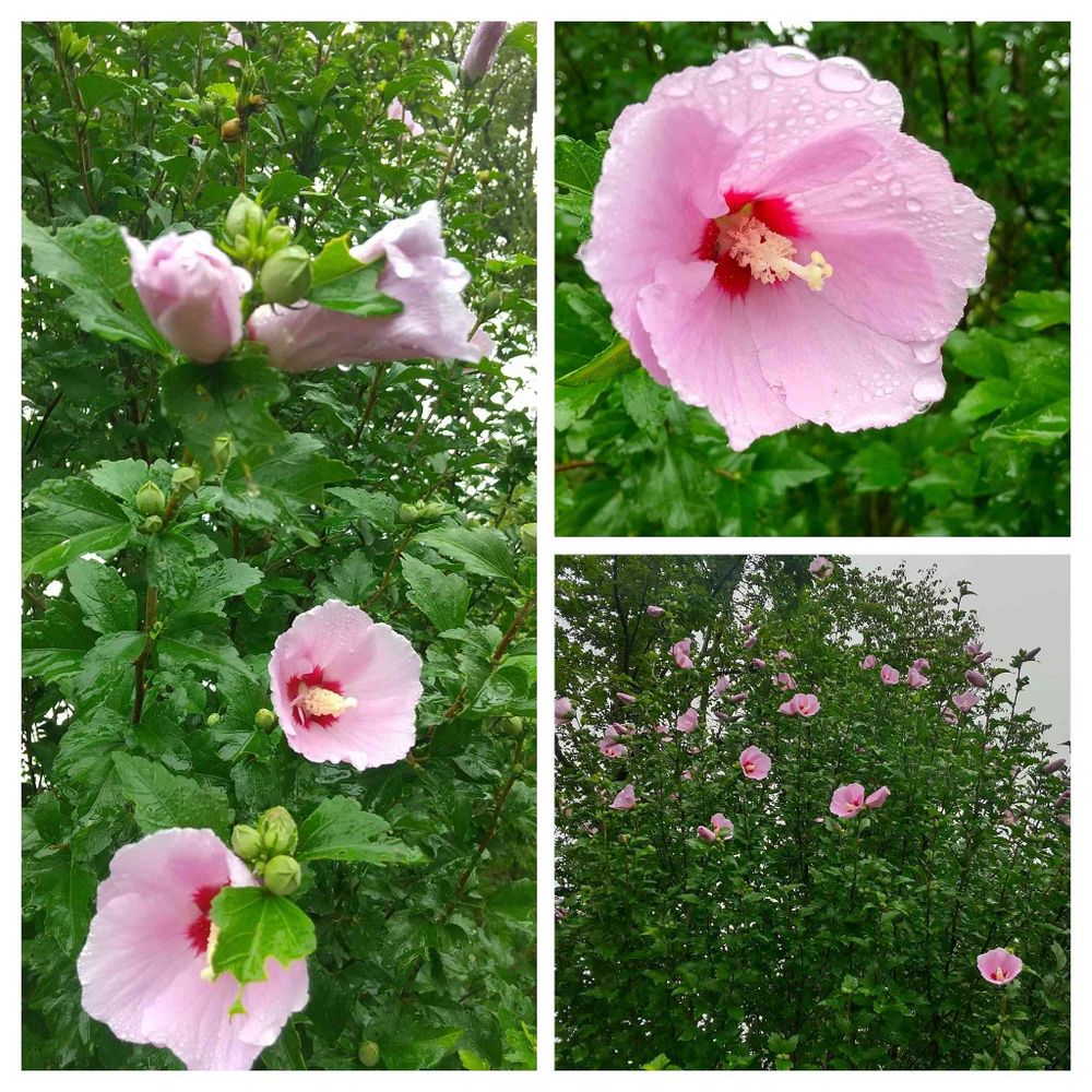 お隣さんから苗木で頂いた木槿も、のびのびと成長して美しい花たちで楽しませてくれます🎶💖🤗
