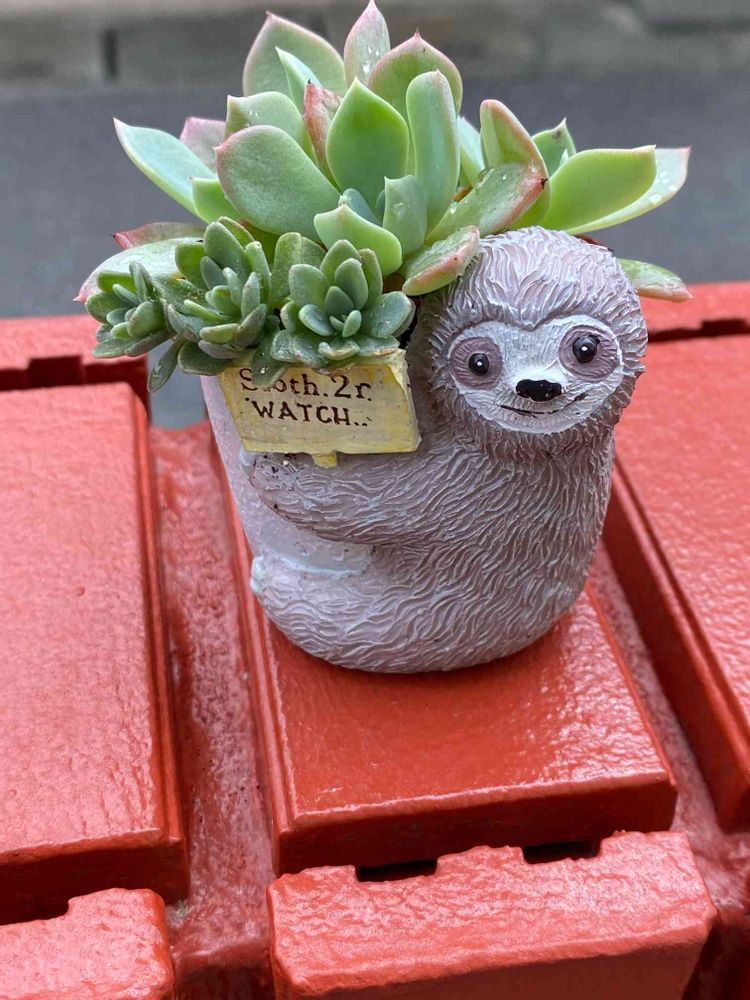 なまけものちゃんの愛嬌がなんとも可愛いくそこに多肉を、と思われたアイデア