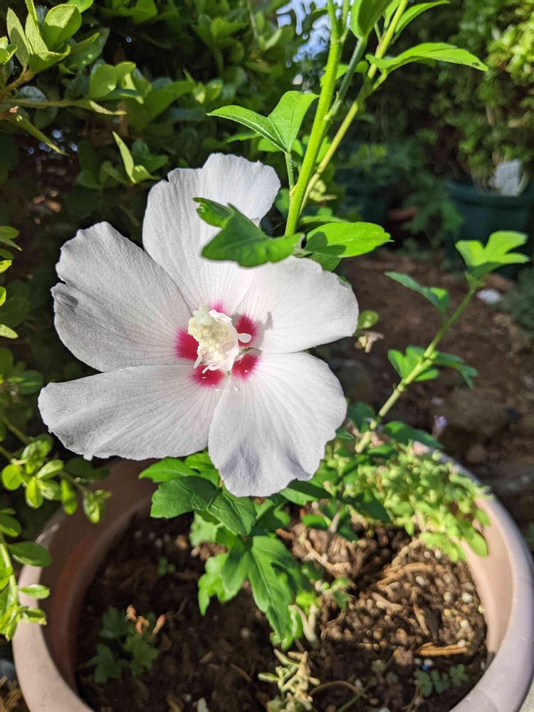 近所から、挿し木用にもらい、植えていた苗木、小さいながらも、一輪花が咲いてくれました。