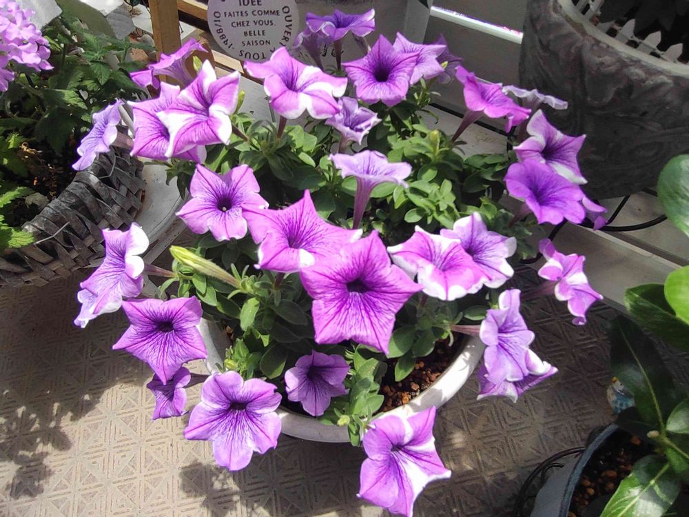 大きな切り戻しはせず、込み入った葉をときどき剪定ながら育てている、2年目のペチュニア藤色小町ちゃん💜