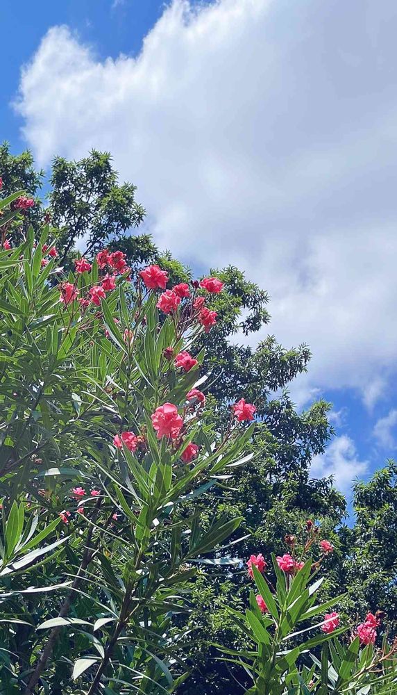 夏の暑さにも負けずにたっぷりと花を咲かせるキョウチクトウ💕💚