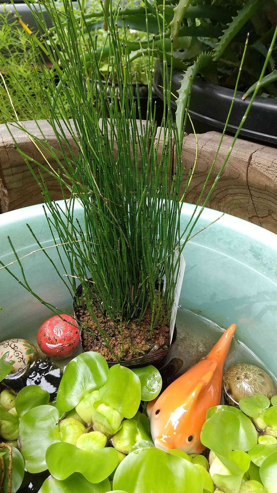 越冬した布袋葵(ホテイアオイ)と一緒に、涼しげです。