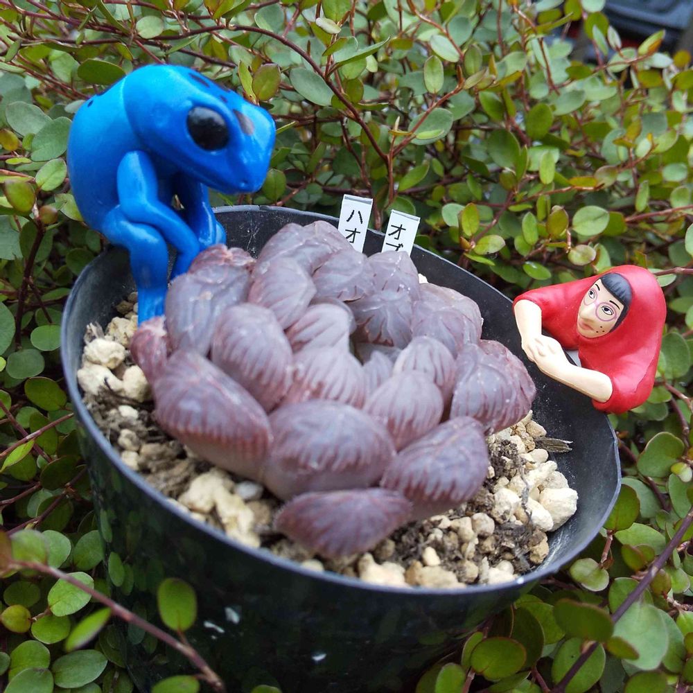 月の雫さんのオブツーサ,かえるの置物,多肉無人販売の投稿画像