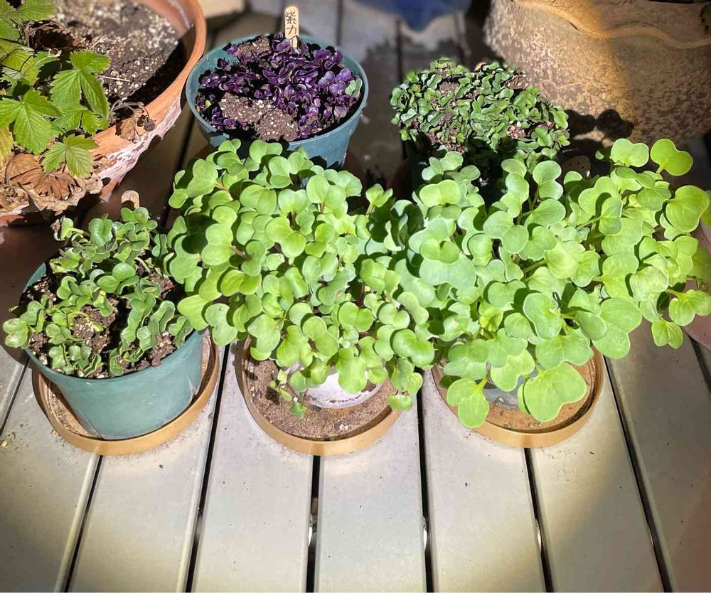 バルコニー/ベランダ,ルビーカイワレ大根栽培,紫カイワレ大根栽培の投稿画像