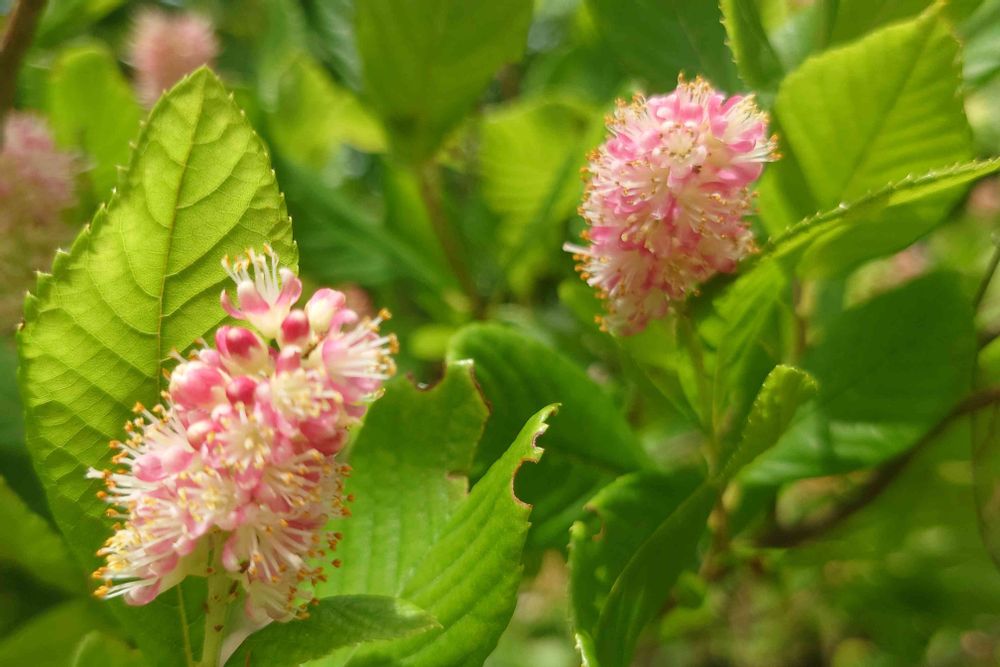 リョウブ科リョウブ属の耐寒性落葉低木で北アメリカ原産です。淡く涼しげなピンク色の花穂で、開花とともに白色に変化する花色が楽しめます。