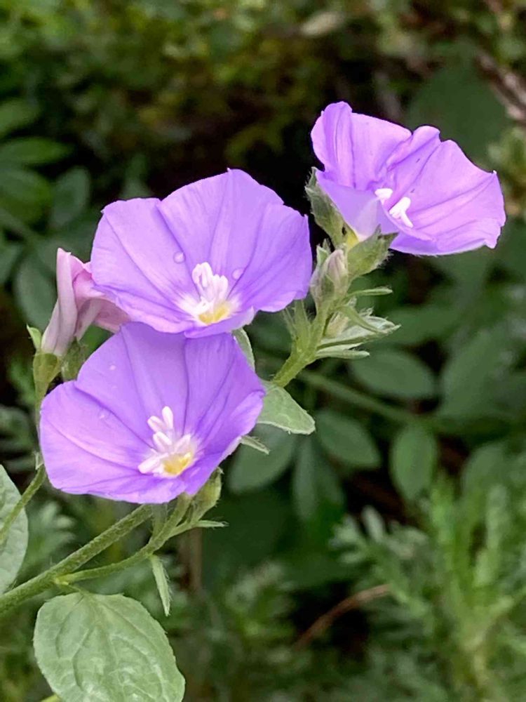 蔓がどんどん伸びて数倍のボリュームになり、なかなか蕾がつかなかったヒルガオ科のコンポルブルスが三つ初咲きました🎉