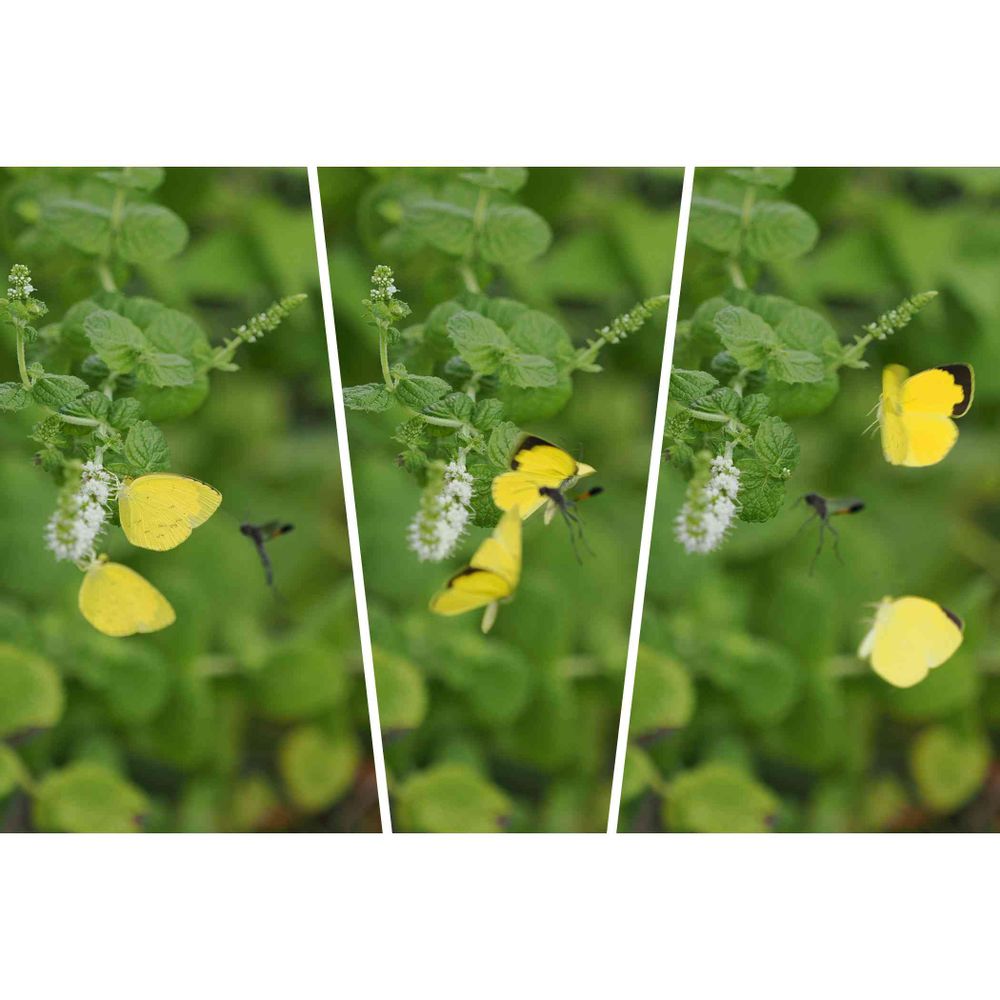 キタキチョウが二頭ラブラブだったのでカメラを向けると、横から何やら邪魔者が割って入ってきて~