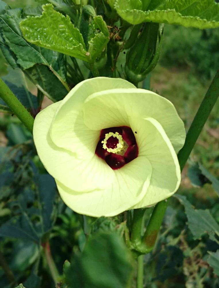 オクラのお花はハイビスカスに似た感じの綺麗なお花なんですね🌺💛🌿😊