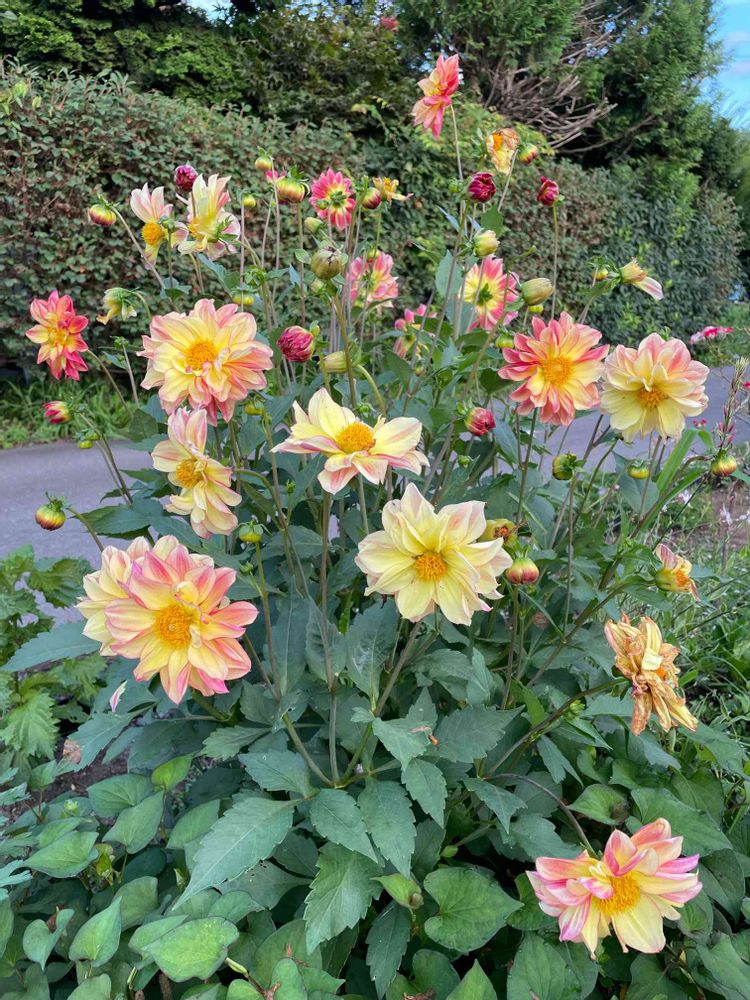 ダリアと言うと濃い花色を想像しますが、優しげな花色でお散歩される方々も癒されるのではないでしょうか😊