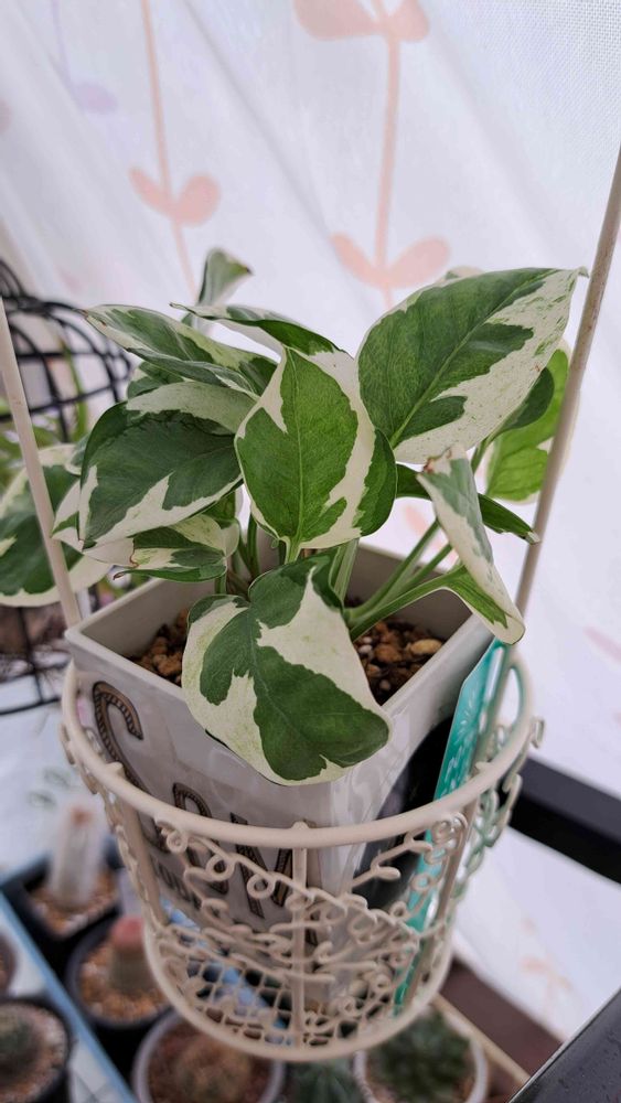 エンジョイ 言葉通り 楽しみました😊 素敵な斑入りですね✨ 我が家にも欲しいです 我が家はポトスライムがありますが 蔓が伸びて2m以上あり 少々もて余しています😞