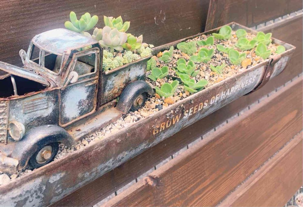 アロマティカスいい香りですよね(´˘`*)ブリキ鉢にシャビーなトラック🤎