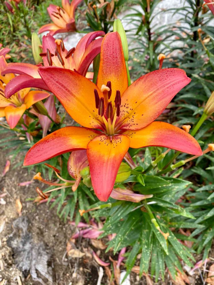 独特な発色をする品種でオレンジ色と朱色のグラデーションが渋いユリです。