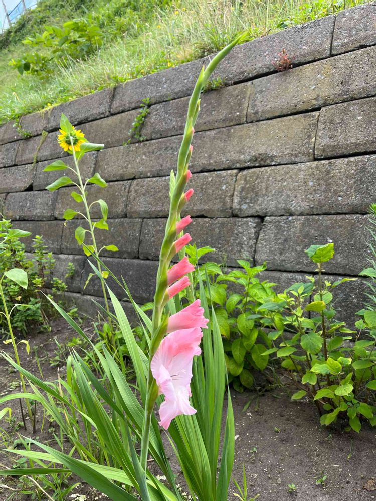 我が家の斜のグラジオラスピンクだった!お盆には間に合わず咲いてしまうのねー😂