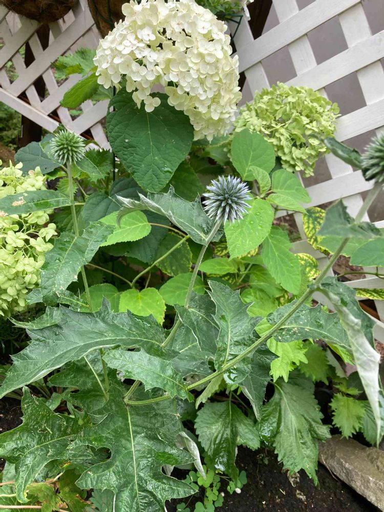 小さな庭,ルリタマアザミ(エキノプス),ジャンボアナベル紫陽花の投稿画像