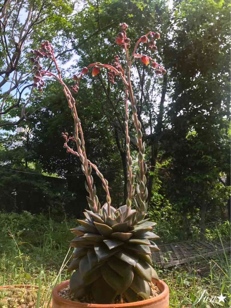 花芽も空高くたくましくといった感じで見事でしたー!花を楽しみたい所でしたが、さっき花芽の葉をもぎ取って葉挿しにしました!