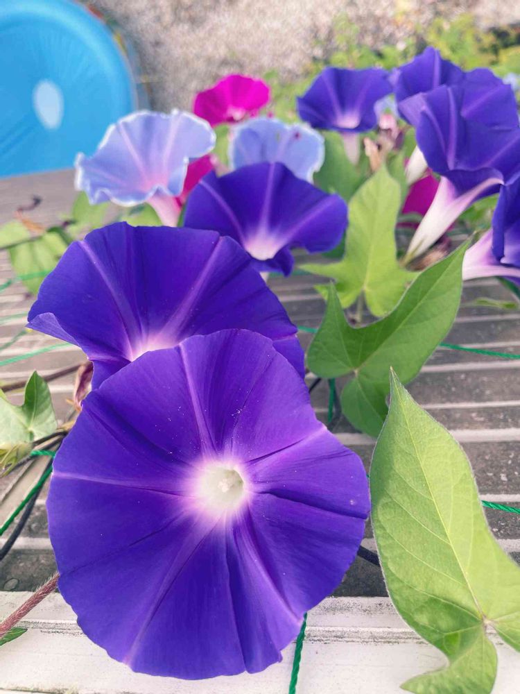 アサガオのお花が並んで咲いていましたΣd(・ω・*)