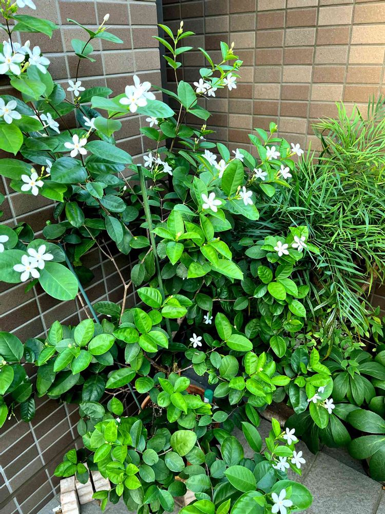 まだ満開じゃないけど、玄関先を涼しげにしてくれるセイロンライティアさん。ずうーっと10月半ば位まで咲いてくれるので、大好きなお花です。❤
